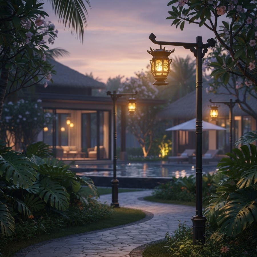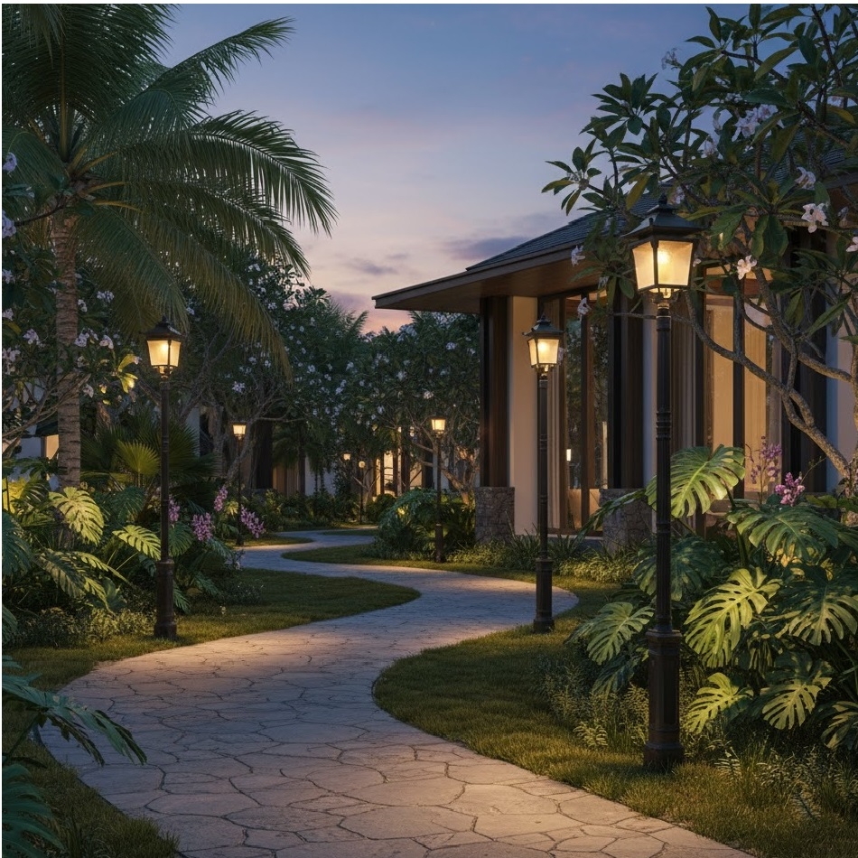 Khu Đô Thị và Khu Nghỉ Dưỡng (Resort): Chiếu sáng lối đi dạo, tạo không gian lãng mạn, cổ kính.