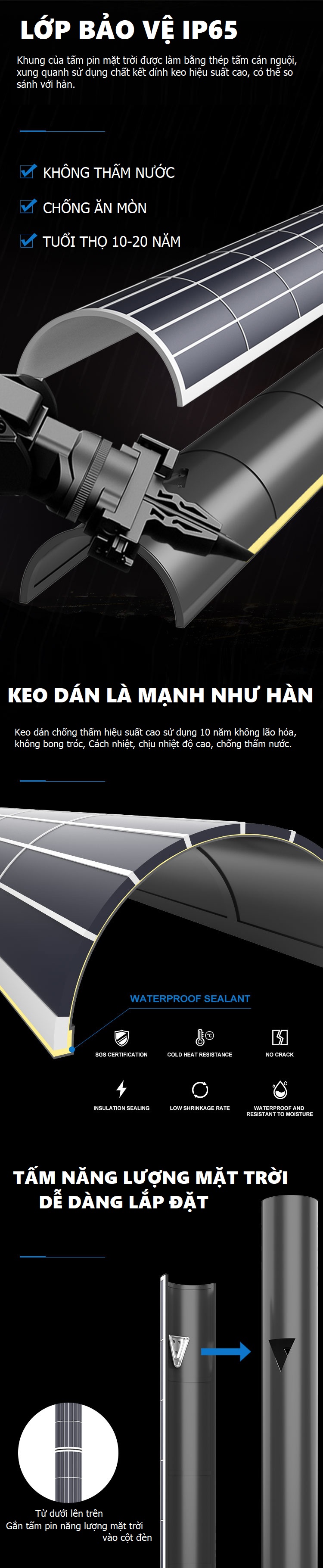 Sử dụng cho các loại cột đèn/trụ đèn có thân trục tròn, chúng có cấu tạo đặc biệt được kết dính với kéo hiệu suất cao, IP65, không thấm nước, chống ăn mòn, tuổi thọ từ 10-20 năm. Dễ dàng lắp đặt và hiện tại chưa OEM được theo yêu cầu bởi chúng đã đc FIX sẵn theo modul đi kèm.